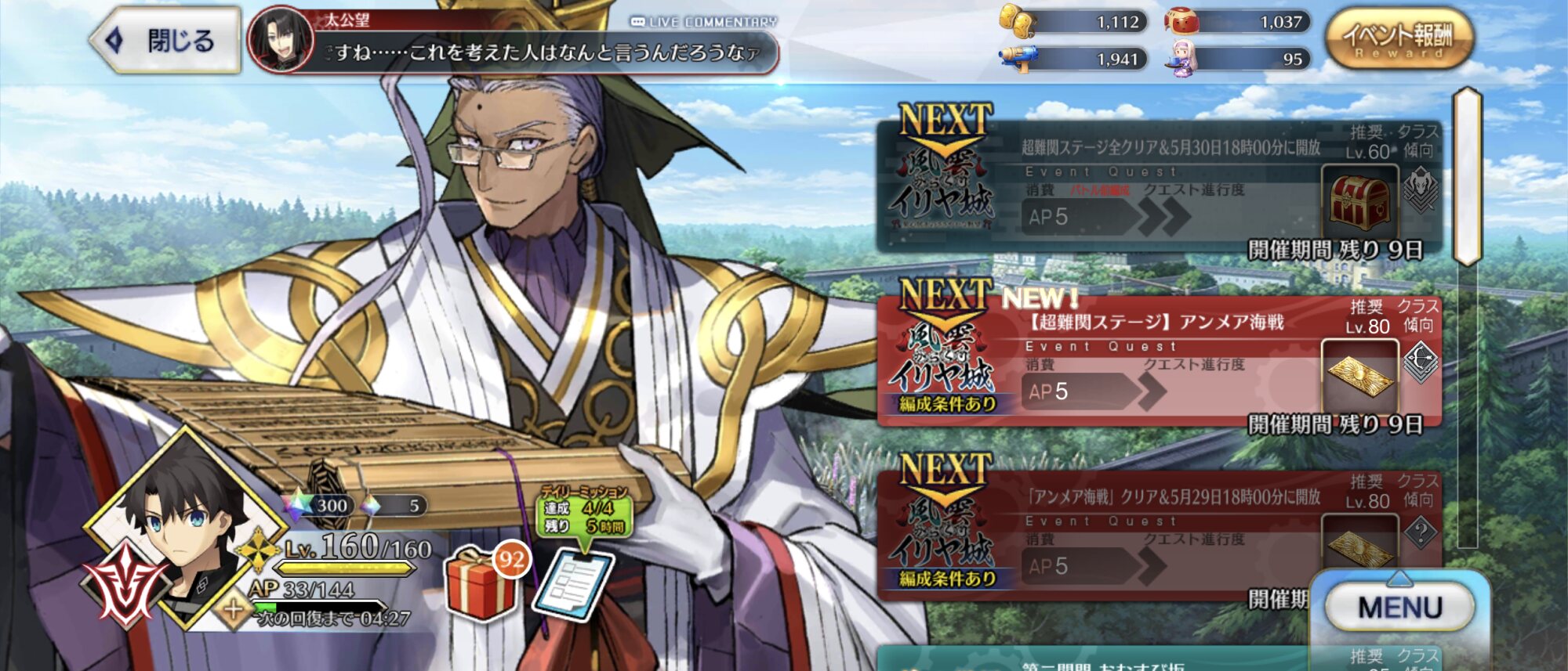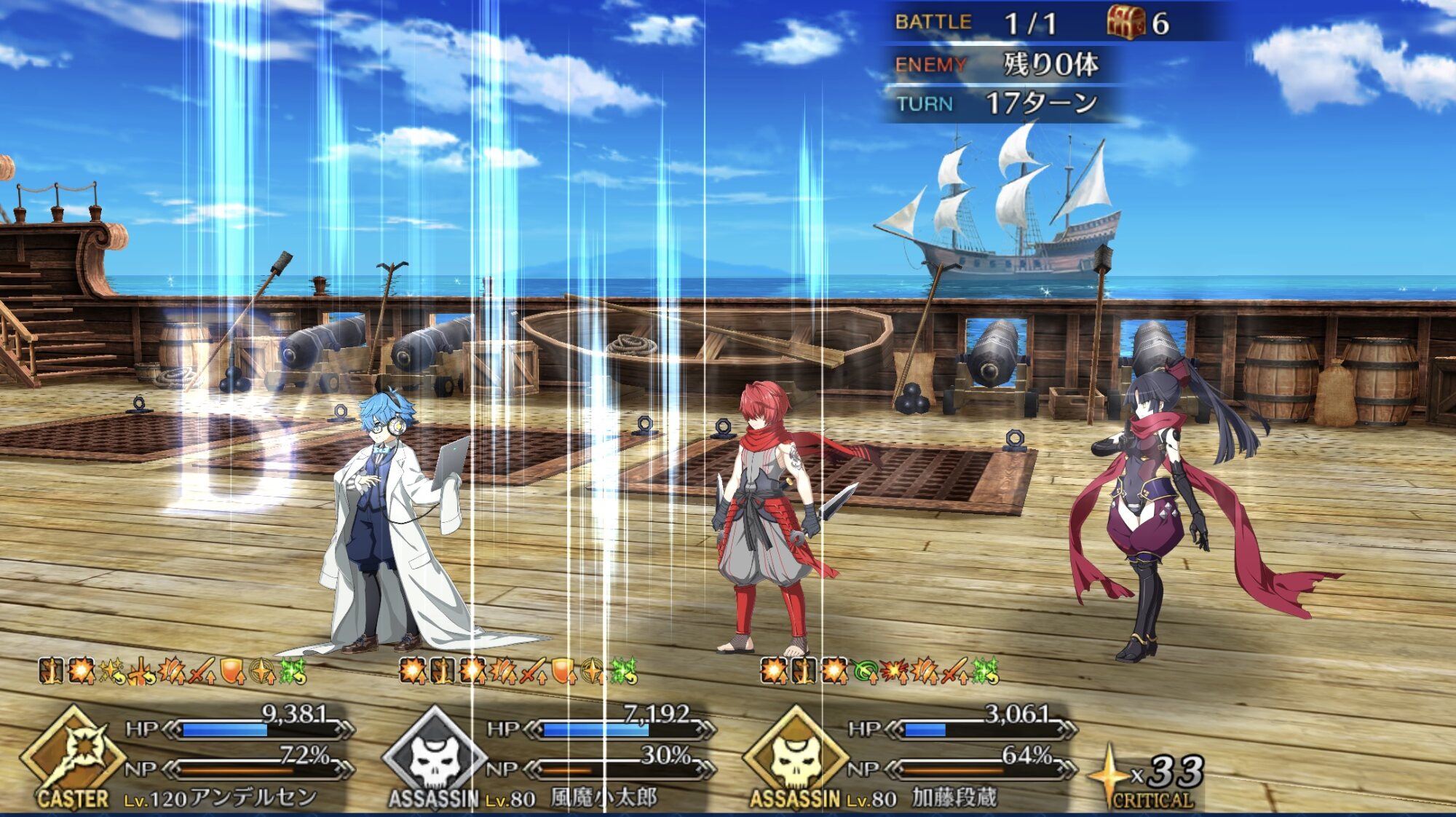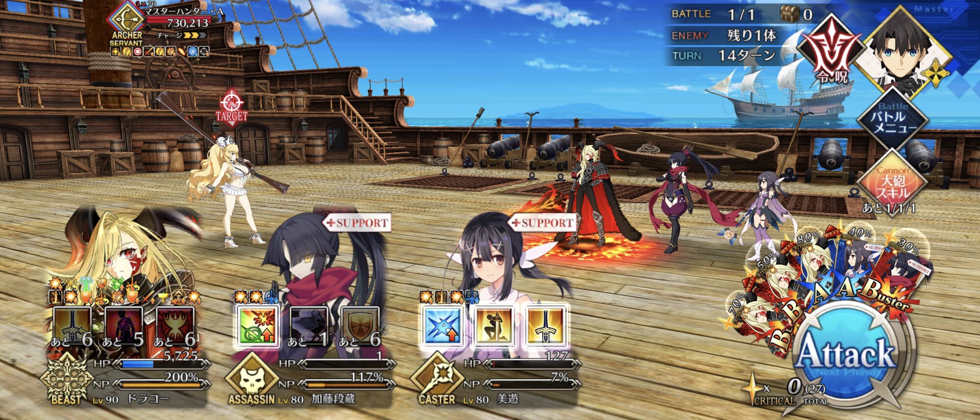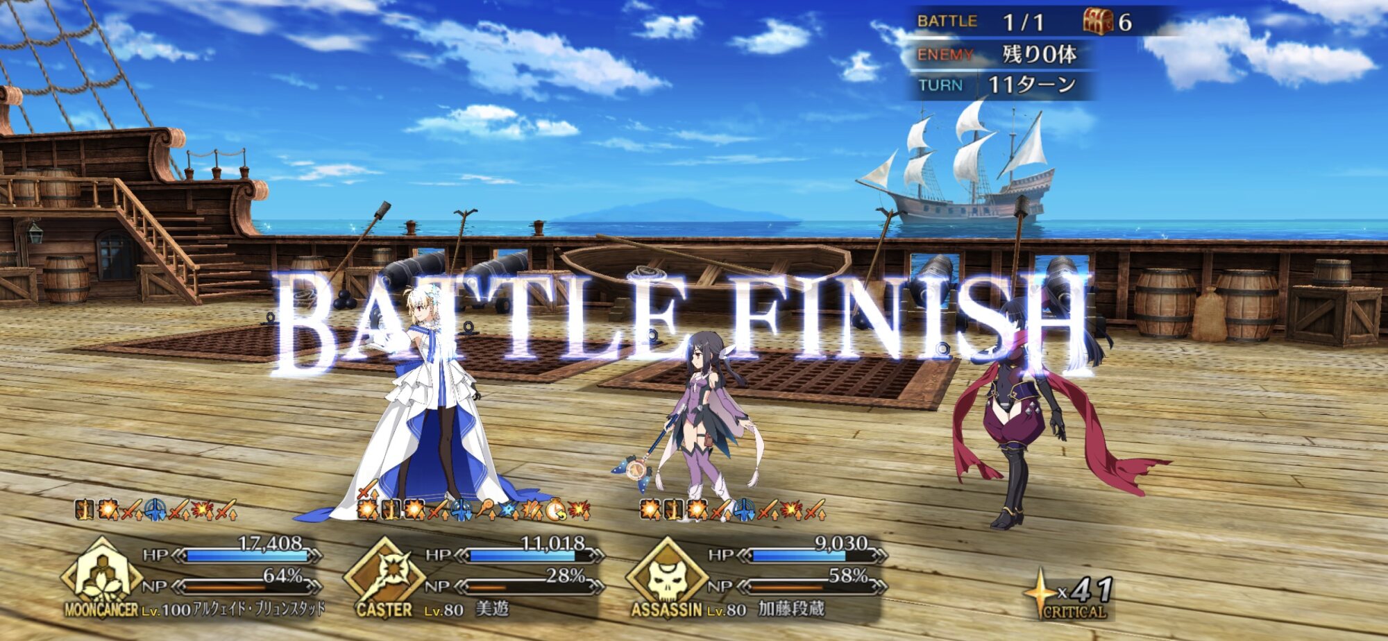 今回もクリア!段蔵ちゃんが攻撃力アップ+確率ダメージ無効かな?スプリガンになるべく大砲を打って、段蔵ちゃんとか小太郎くんの宝具でまとめて薙ぎ払うのが楽ね。
