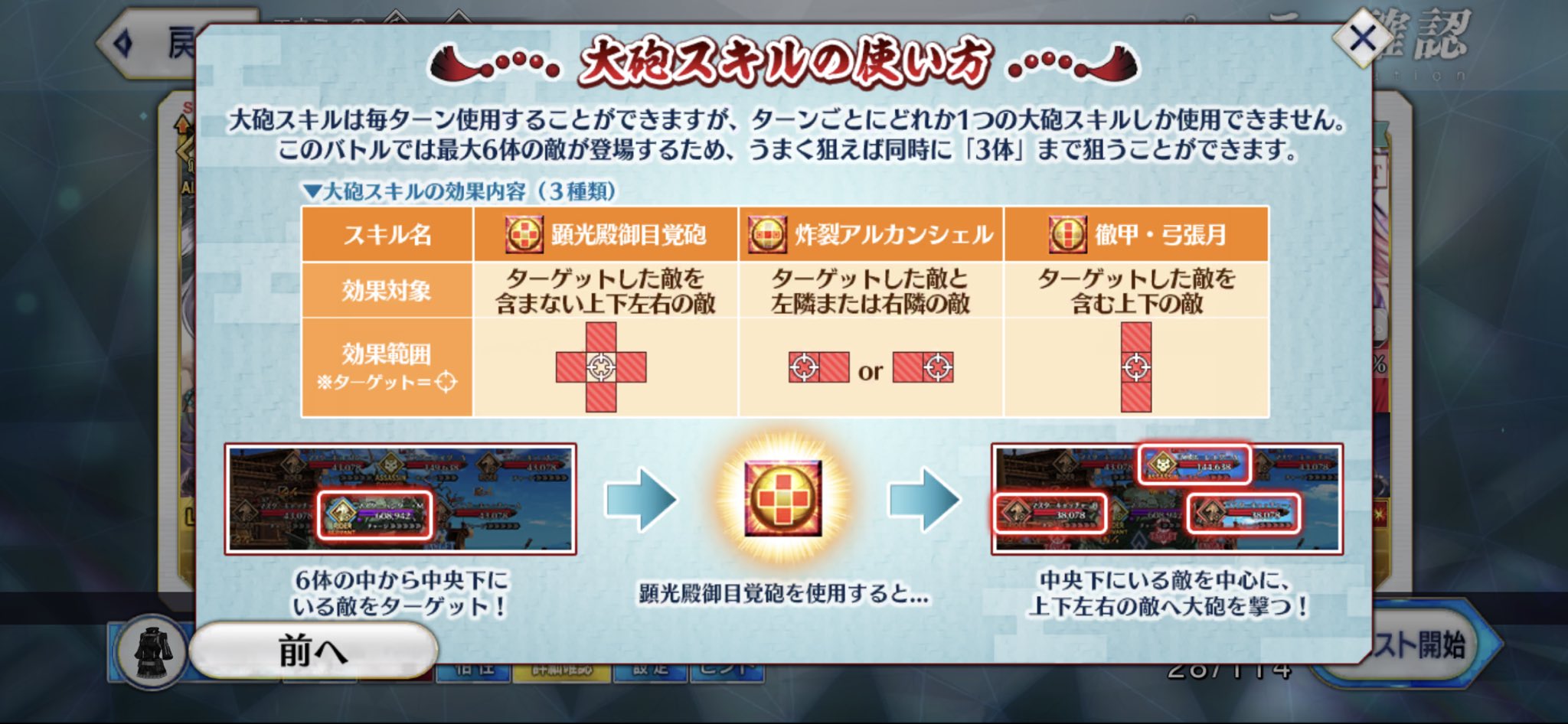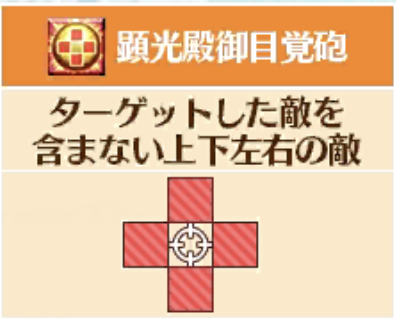 十字大砲はターゲットを中心にした上下左右に当たるので、狙いたいターゲットを中心に据えないこと