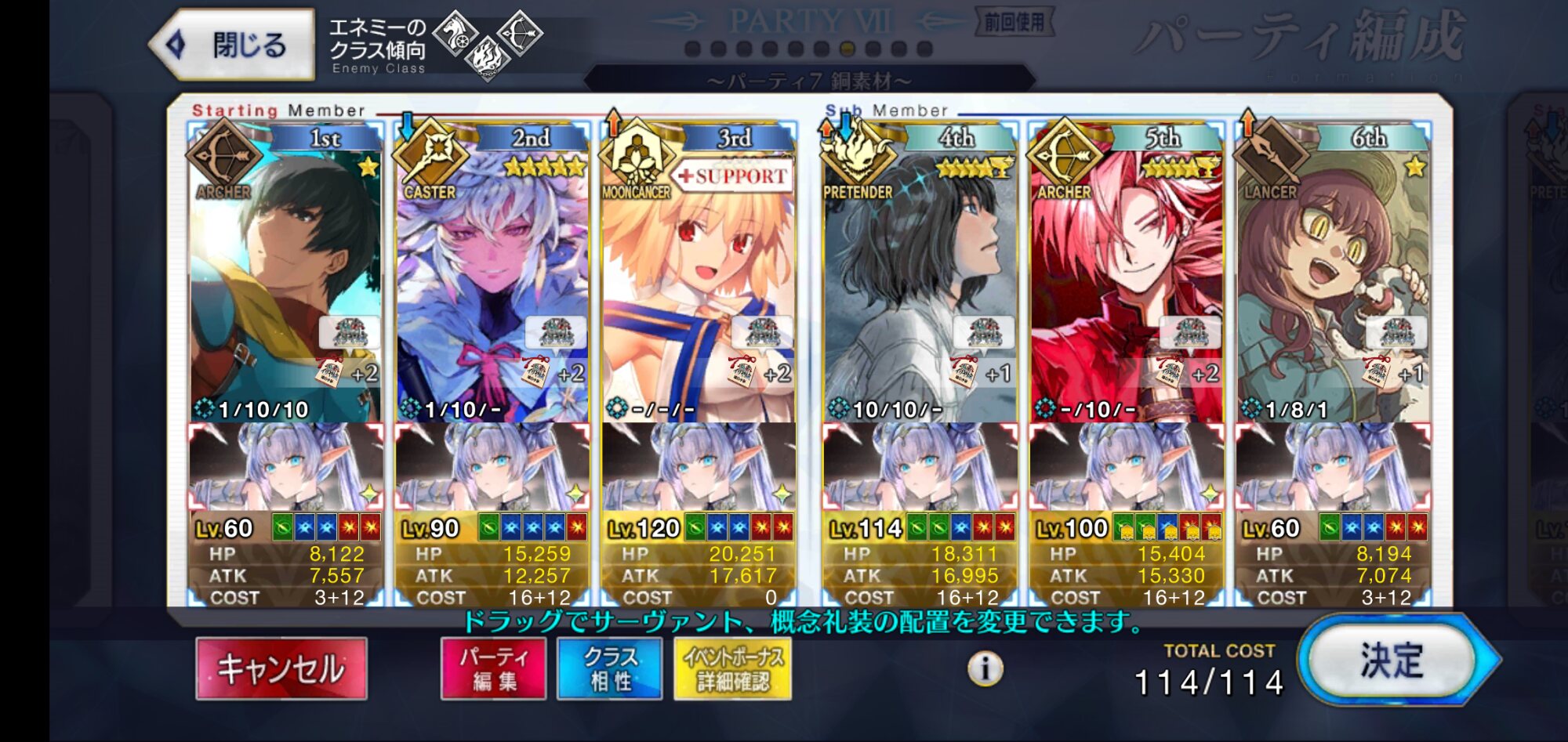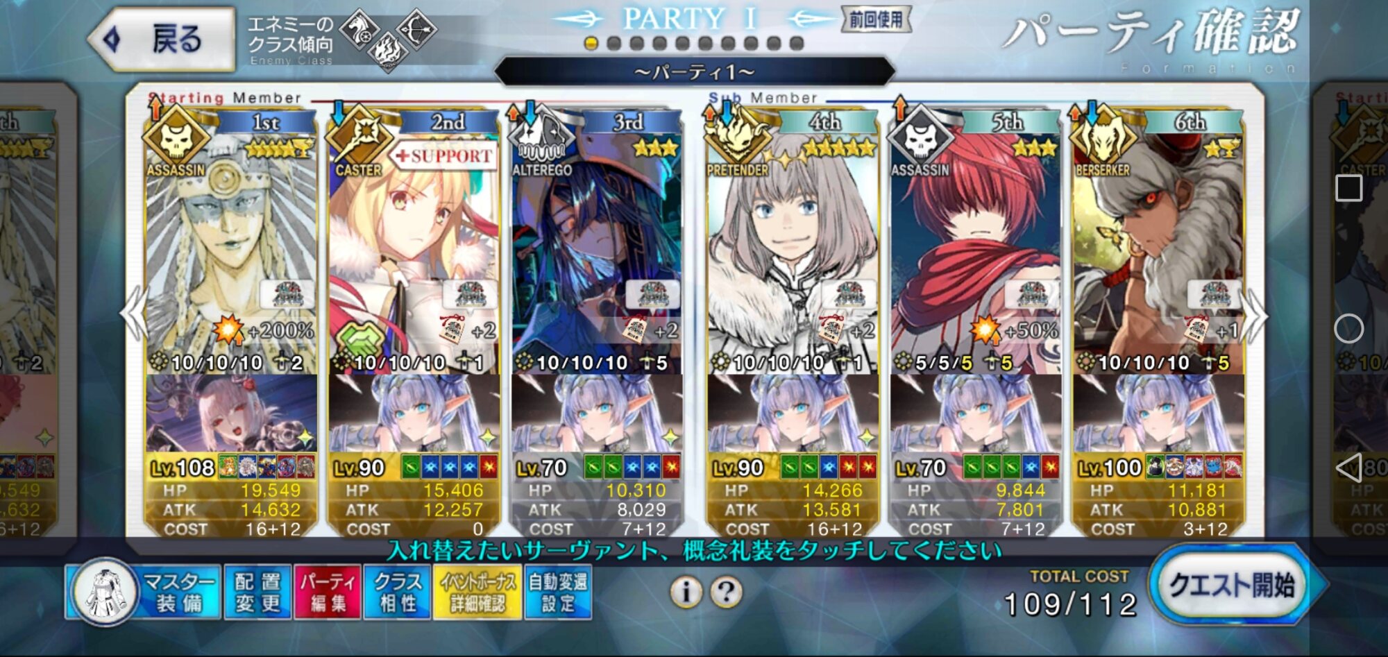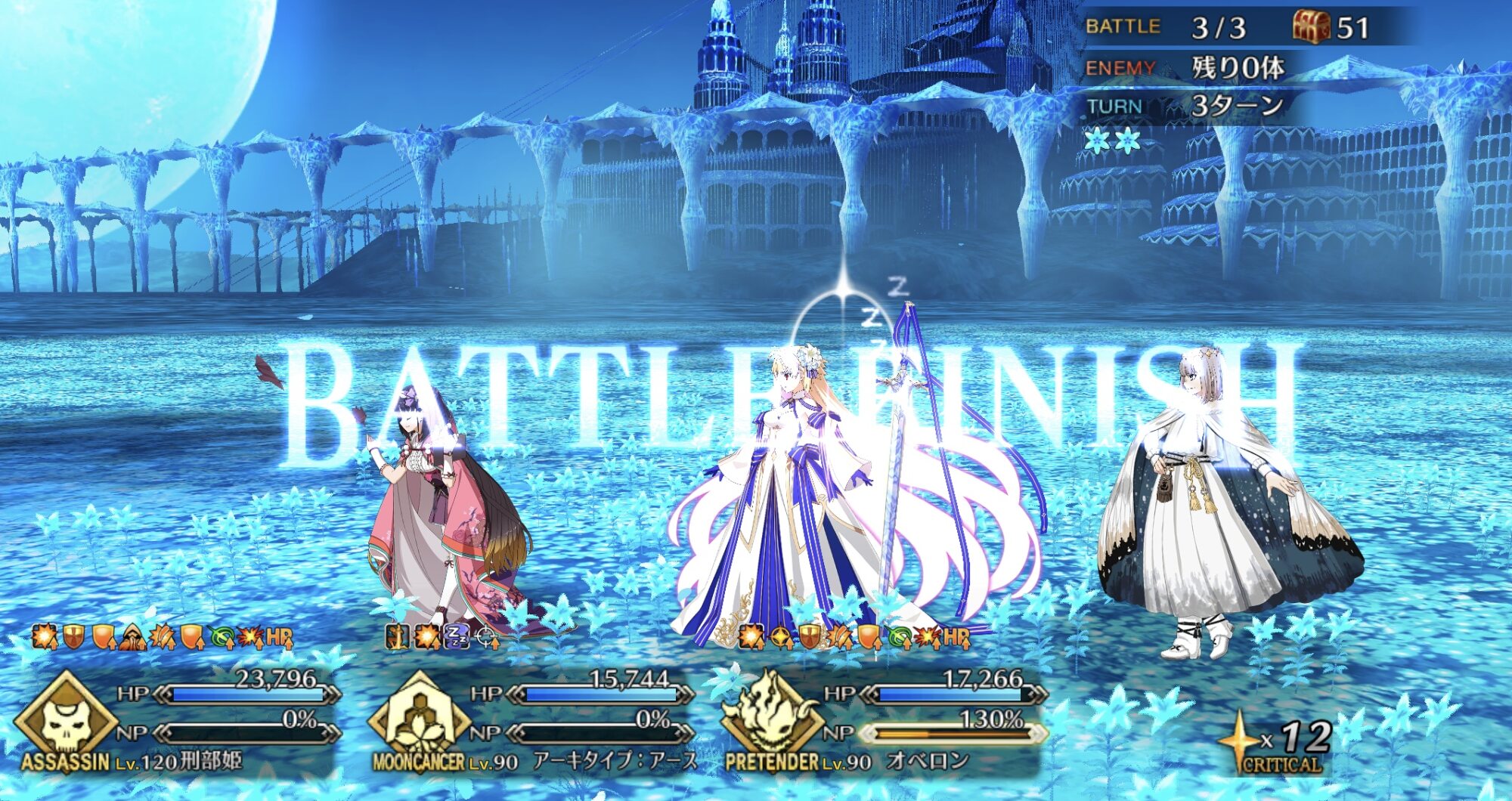 あと、マスター礼装は決戦用カルデア制服で、前衛3人には全員凸ウィナーズ、水着ノッブがアペンド2開放済で、ポカニキのアペンド2がMAXである事が必要な条件かな?
