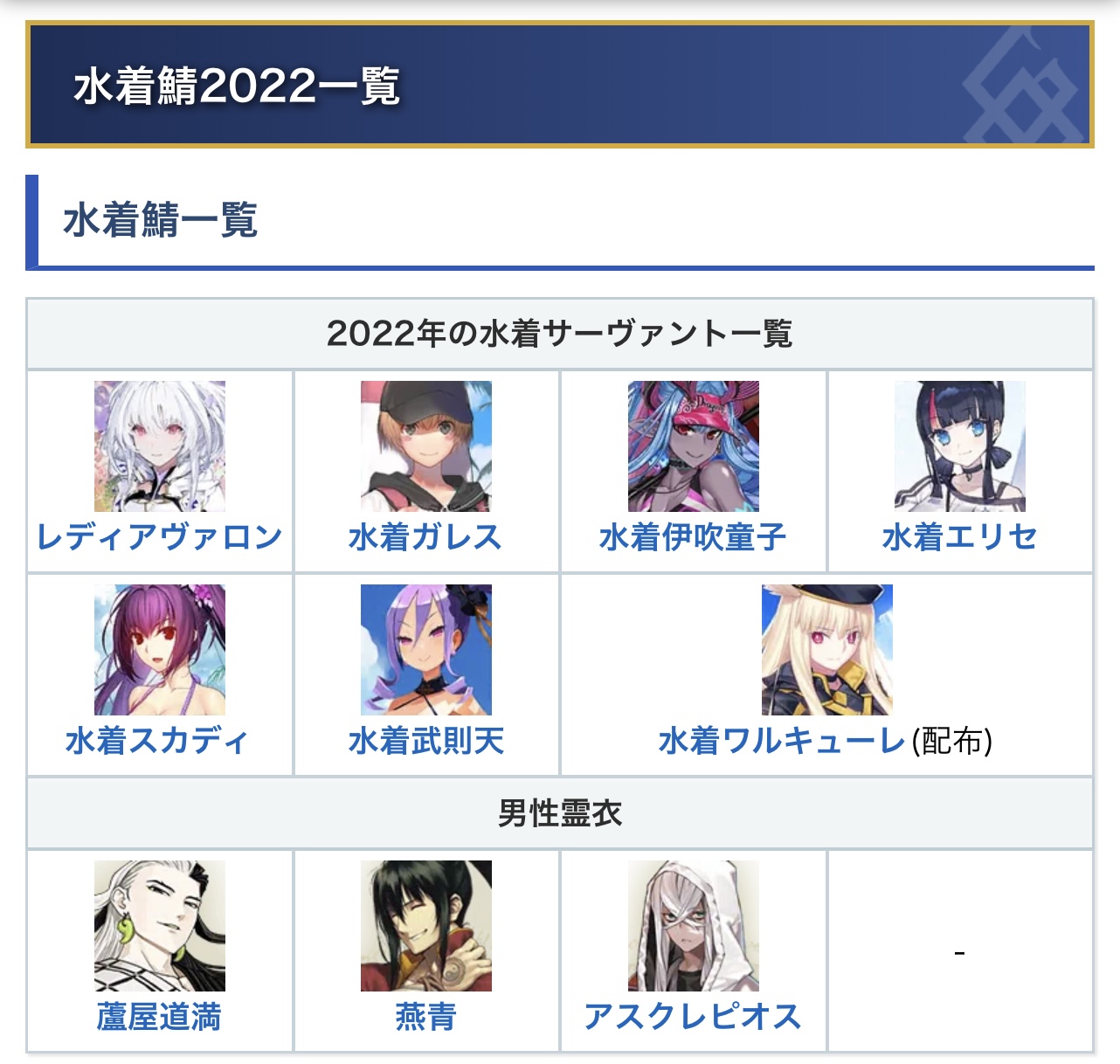 2018年以降は男性霊衣が増えたからその分1騎減ってる