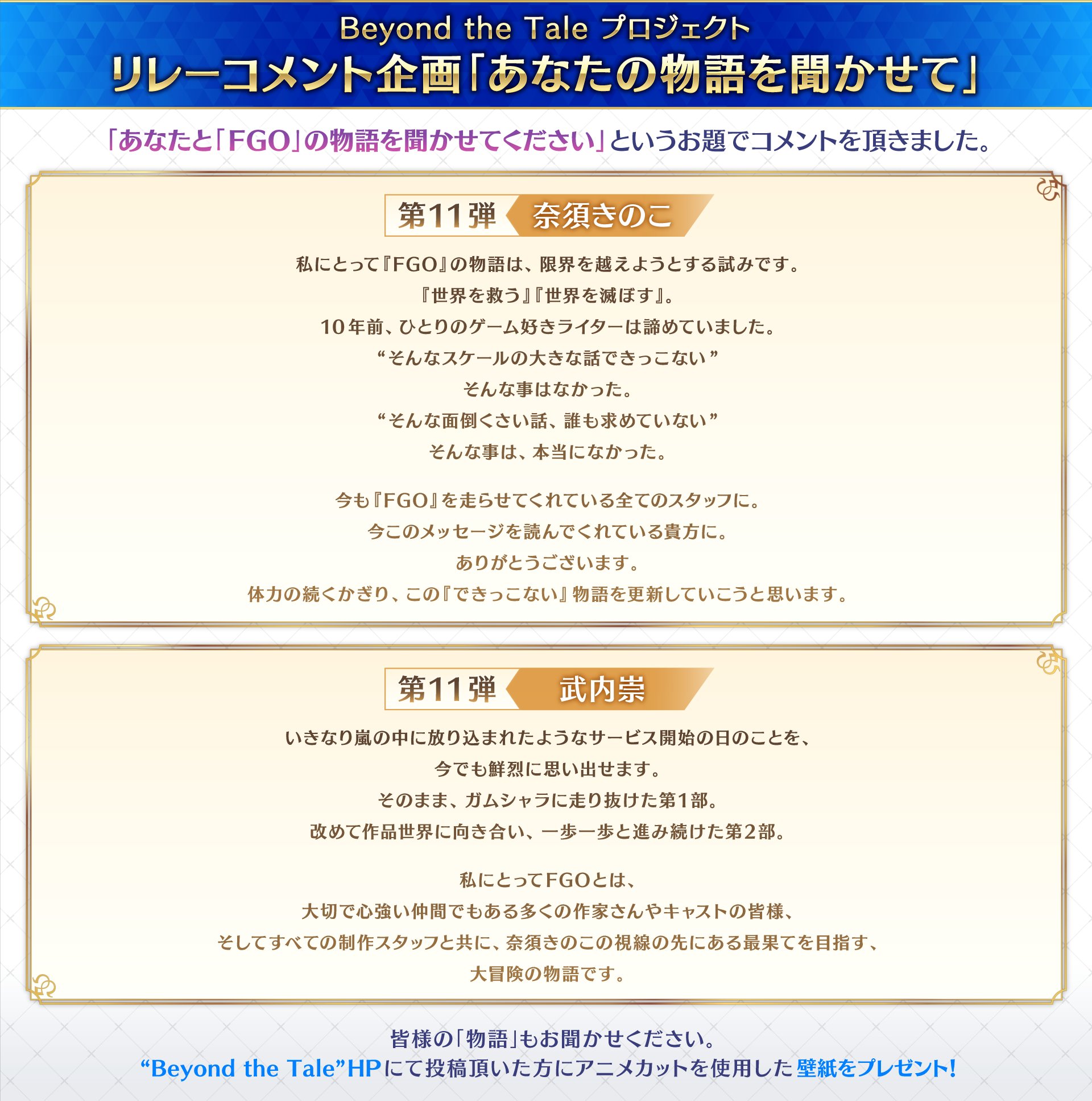 ラストは「私と『FGO』の物語」奈須きのこ・武内崇からのコメント!#FGO #beyondthetale #FGO8周年https://t.co/g8eZ6R6KBF pic.twitter.com/AdARBOEblx