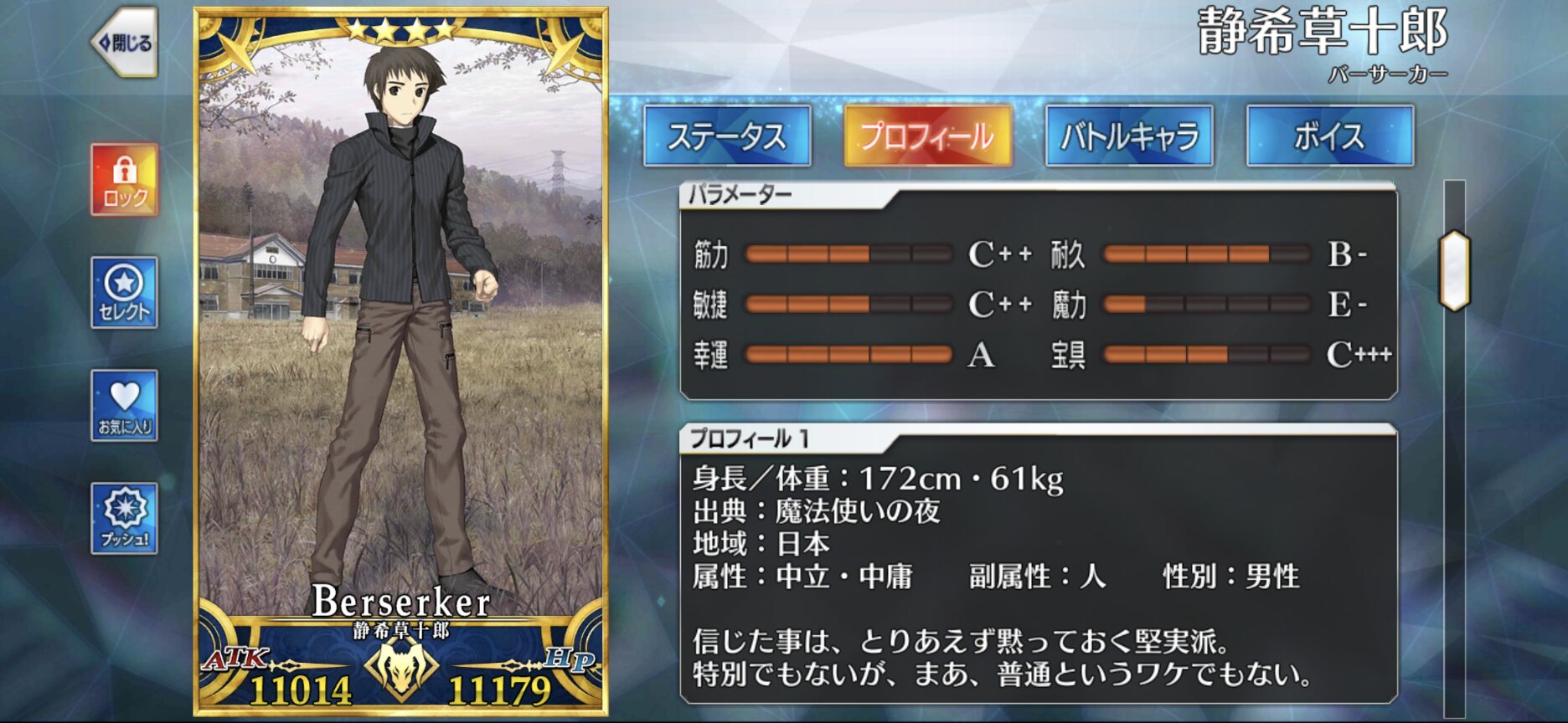 【FGO】静希草十郎は何気にカリオストロより筋力ランクが高い