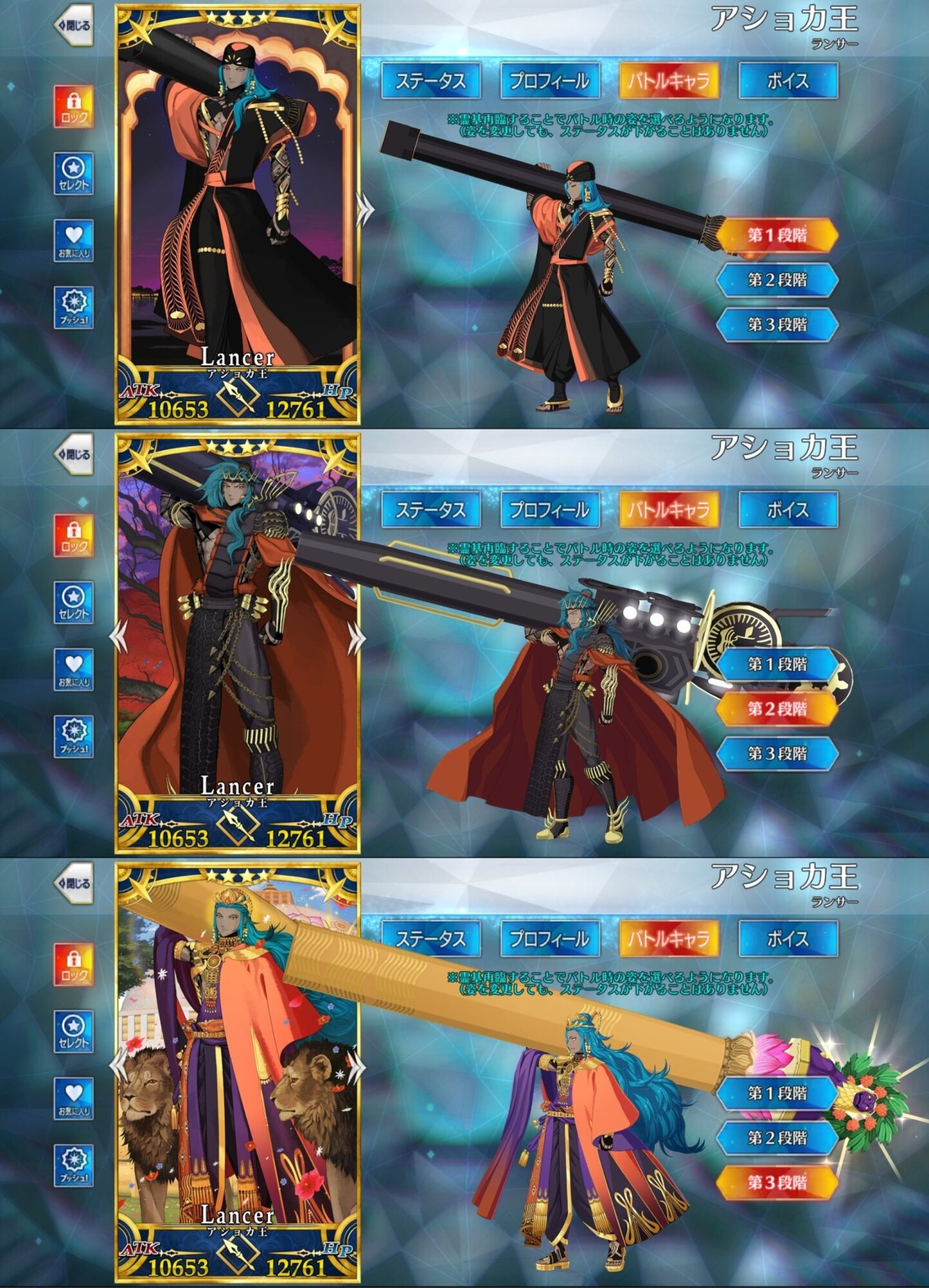 水着伊吹は本人が大きい、アショカ王は担いでるものが大きい、だからこの2人に並べるとアシュヴァッターマンがちょっと小さく感じるな……でも3人並べたらすごそう