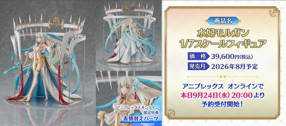『Fate/Grand Order』アニプレックス「水妃モルガン 1/7スケールフィギュア」予約開始。ANXオンラインでの限定購入特典では「表情替えパーツ」が付属