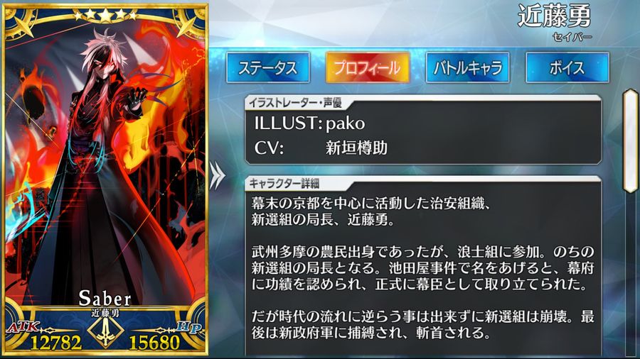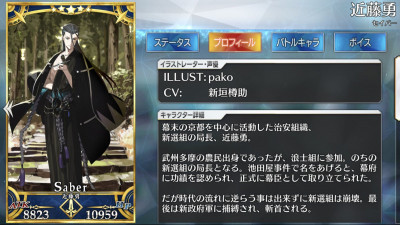 【FGO】近藤勇のキャラデザを担当するイラストレーターはpakoさん。演じる声優は新垣樽助さんで『Fate/Zero』に登場した間桐雁夜を熱演されたお方