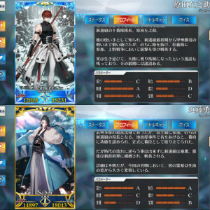 斎藤もステータスは結構高いセイバーなんだよね。山南はステータスがセイバーとしてはやや低めに感じ