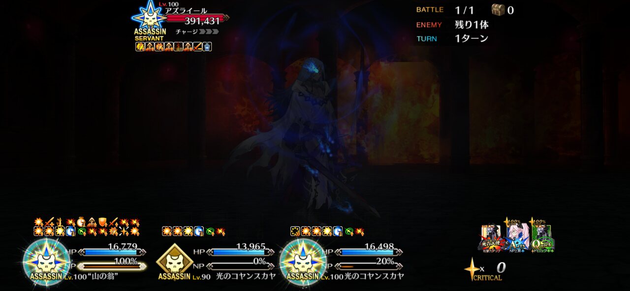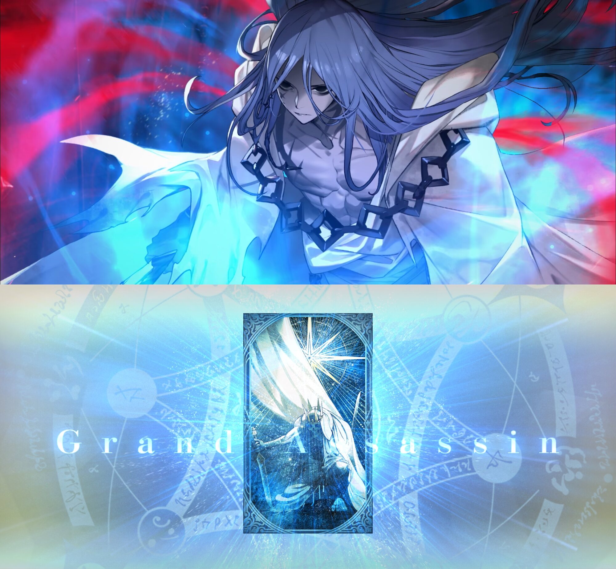 蒼きアズライールの宝具カットイン、グランドアサシンのクラスカードに描かれている姿と構図(ポージング)が同じなんですね