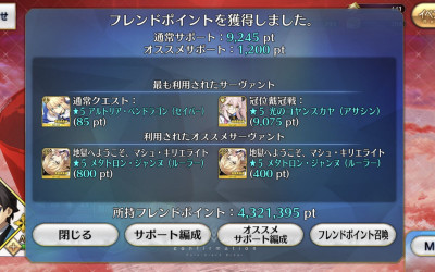 イシュタルシステムとか、採掘場シエル編成とかで普段から酷使してたせいでアサシン冠位来る前からとっくに絆15になってた自分みたいなマスターも多分多い