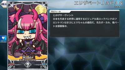 きっとブレイブ、シンデレラ、ハロエリ、カーミラ、メカエリチャン、エリザ、そしてランサー星5エリザベートの7騎でキングエリザを倒すんだろうなぁ