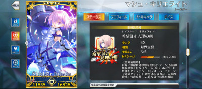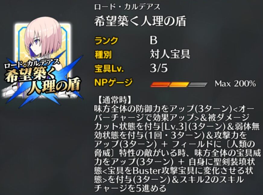 ちょっと思ったのが、今のマシュではレベル3が上限で、レベル5のマシュに更新するんじゃないかな?自分はぐだの2015年の空白を修正すると予想してるんだが、ここを修正すると必然的にマシュも変わるわけで、その結果として宝具レベル5のマシュに変わるんじゃないかと予想してる