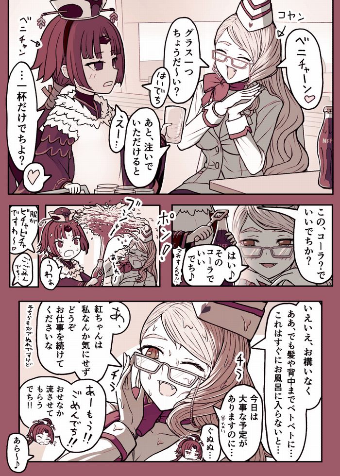 ニキチ「こらヤースカヤ!嗜好品(ソフトドリンク)は楽しむものだが玩具にするのはいけないぞ!いたずらに使うなんてもってのほかだ!そんないけない子はこうだぞ!(ギュッ)」
