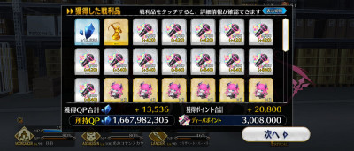 この前ざっくり計算したら90++をポイント系を三枚、アイテム系凸それぞれ一枚ずつがいちばんAP少なく済んだ計算になったわね