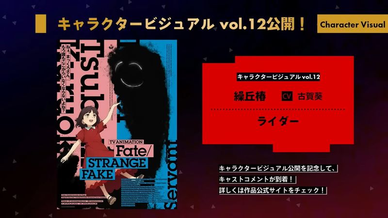 『Fate/strange Fake』繰丘椿&ライダーのキャラクタービジュアル解禁。古賀葵さんのコメントも公式サイトで公開