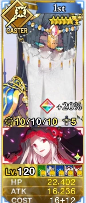 星4という比較的低コストながら味方全体にNP20と3色カードバフという味方を選ばず幅広い面でサポートができスキルでの星出しや宝具後の防御ダウンなどで万が一、仕留め損なっても味方の攻撃への起点づくりとなり得ます