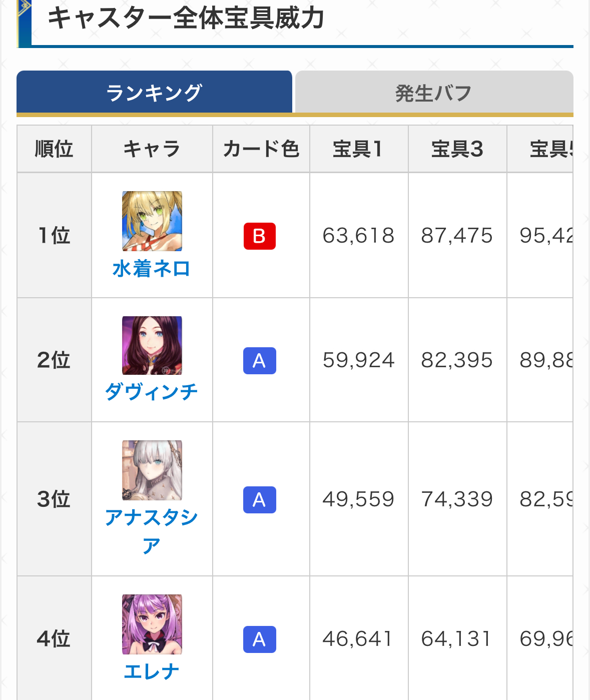 「でもサポーターが本職なら宝具は豆鉄砲だろ?」と思いがちかもしれませんが、実はそんな事はなく第二スキルにより80%発生する宝具バフを使用した場合の火力は何と並み居る星5鯖を抜き第4位に鎮座します