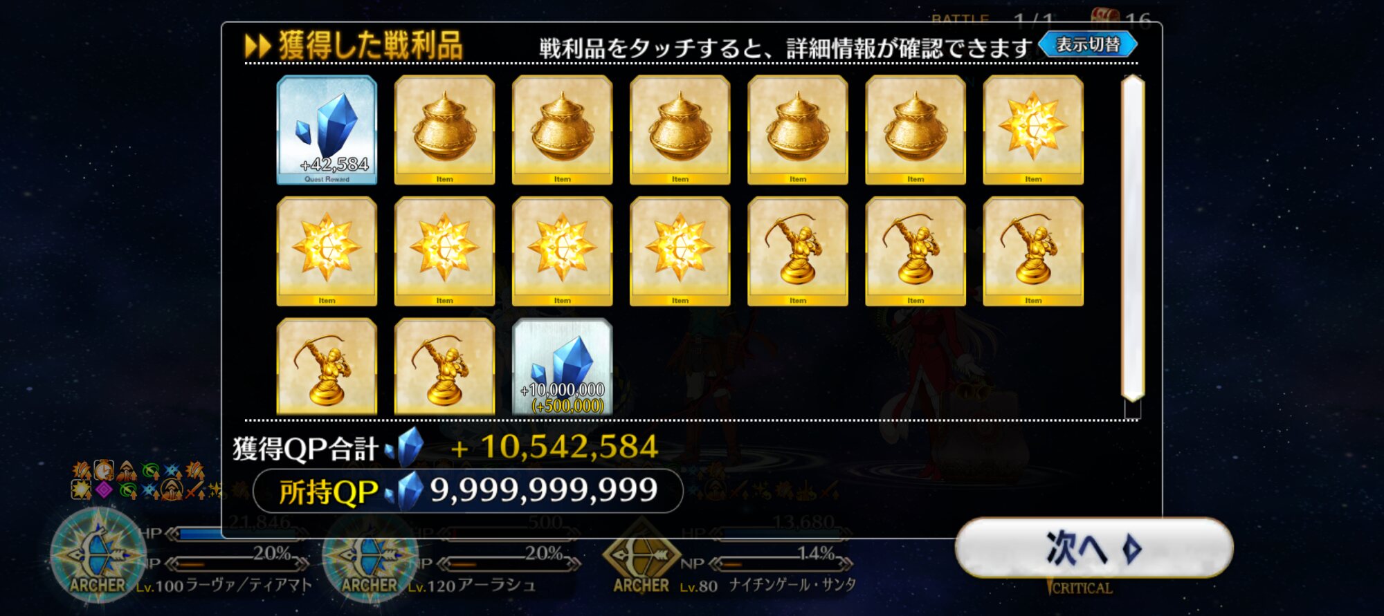 ギルガメッシュ王が1000万QPポンとくれたぜ!(財布から溢しつつ)