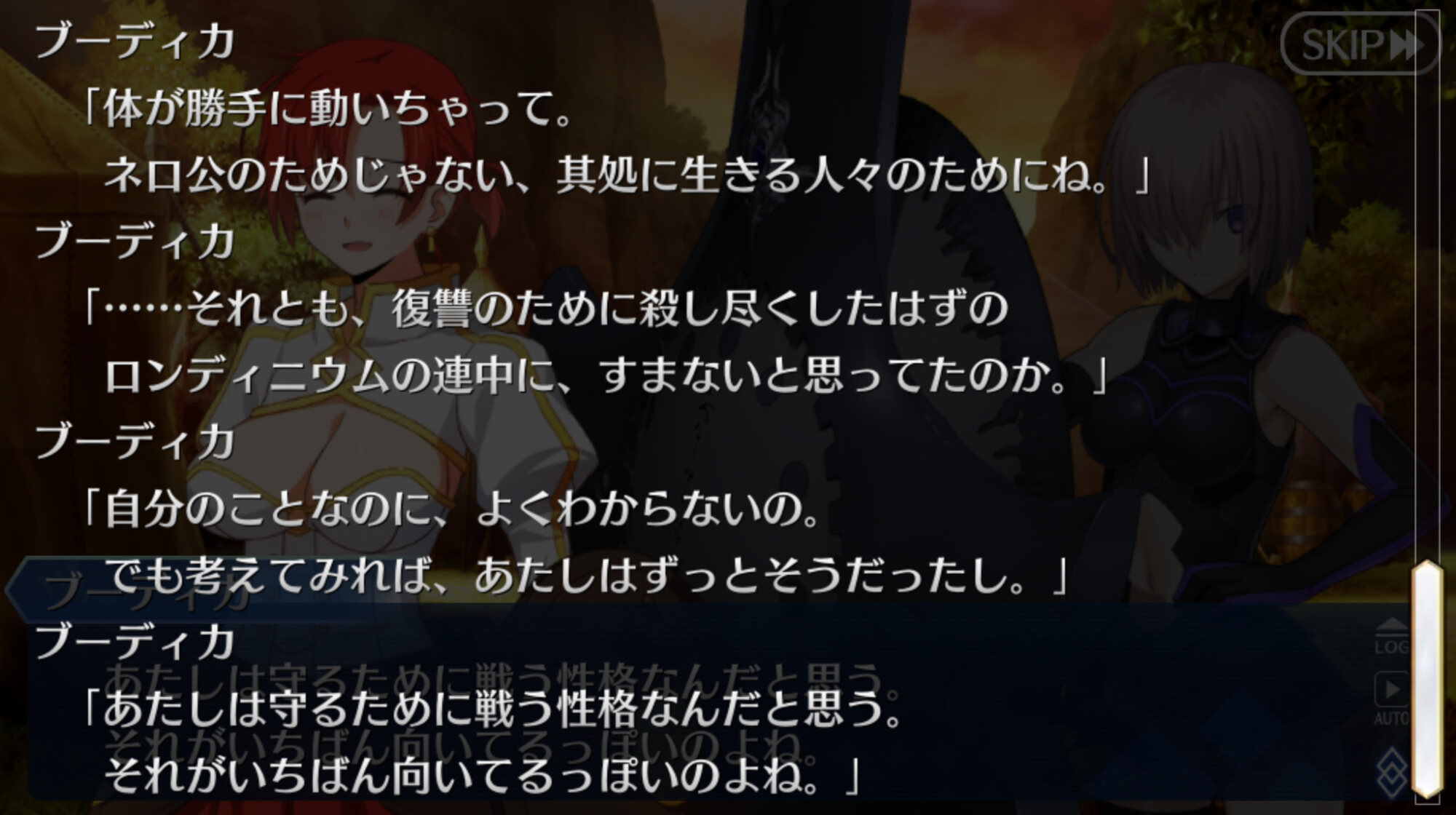 夏でも最初にマシュと私を庇って、マシュがいなくなった私を気遣ってくれて、リップちゃんと遊んでる私を邪魔はさせないとしてくれる面倒見がいいところ