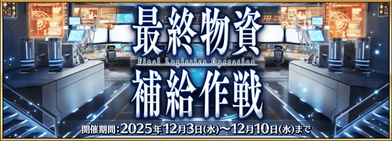 【FGO】2025年12月3日(水)より開幕する「冠位戴冠戦:Caster」とあわせて「最終物資補給作戦」が期間限定で開催!戴冠戦とボックスガチャが合体した夢の大盤振る舞い