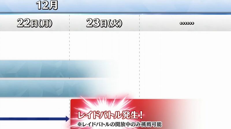 レイドもそうですが、社会人マスターさんのことも考えると最後のシナリオ開放のタイミングも気になりますね。年末は特に残業が多いところも多いでしょう。ここまでみんなの足並みを揃えたのだから全員がリアルタイムで最高の瞬間を迎えたい。