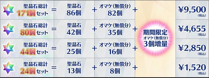 ・(増量中)聖晶石総計 171個セット【聖晶石86個+おまけ(無償分)85個】
