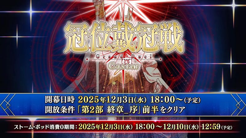 「冠位戴冠戦:Caster」が2025年12月3日(水) 18:00より開幕。