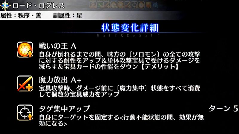 ログレスの父上のタゲ集中はガンドとかで無効になるので単体宝具がグラキャスの人はガンドしよう