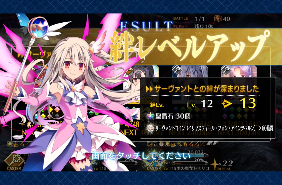 冠位戴冠戦だけで絆が10→13になりました、まだまだ頑張れイリヤ