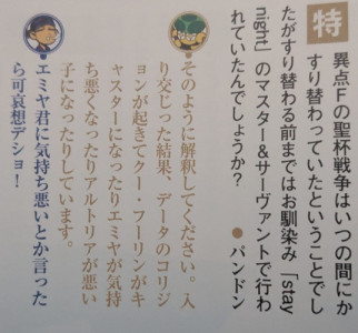 キャスニキならセイバー生存の言及はあるけどエミヤは無いからなあ…と言いたいけどどっこい生きてたUBWの例もあるし、クー・フーリンとアルトリアが居るのにエミヤが居ないと言うのも考えにくいしね。