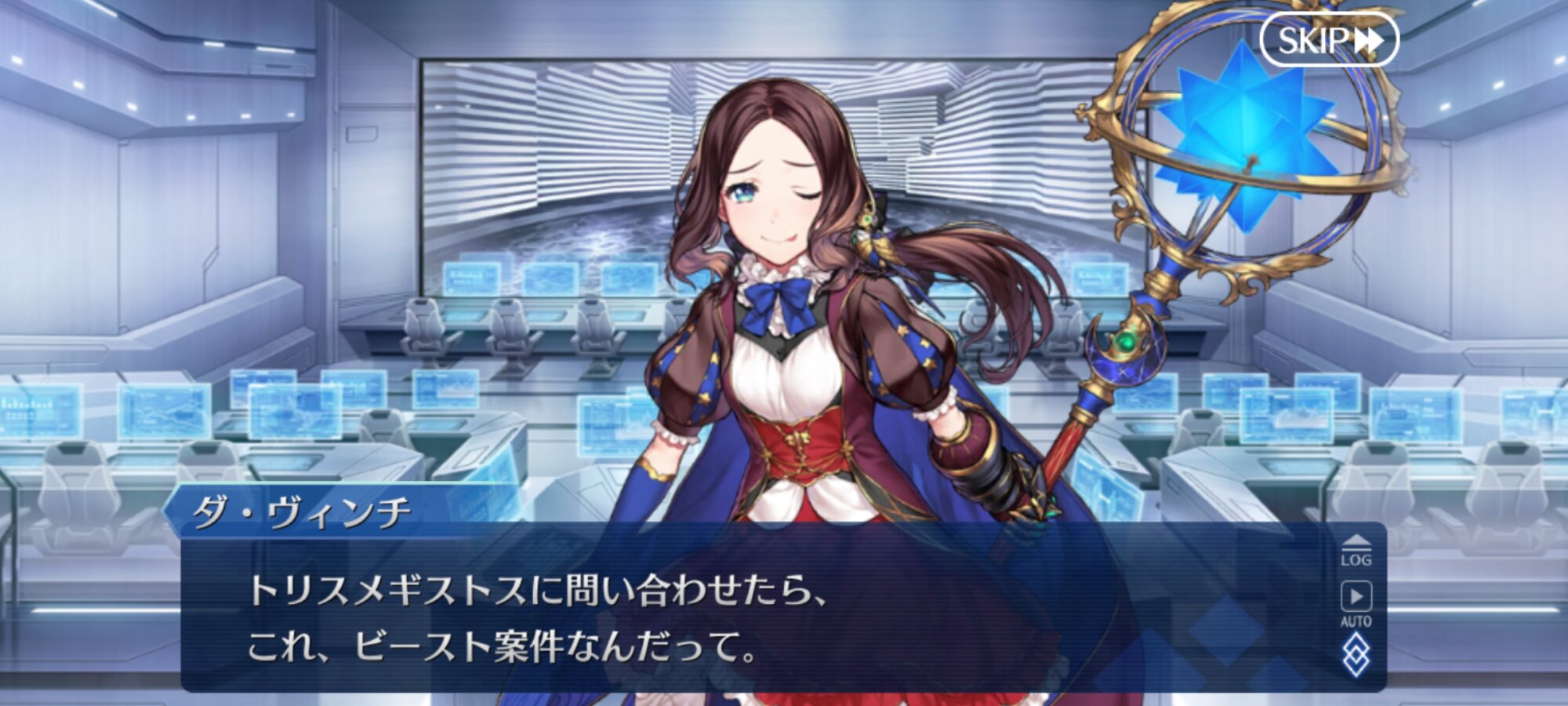 常識では理解不能な事態が起きておろおろするオルガマリー所長。